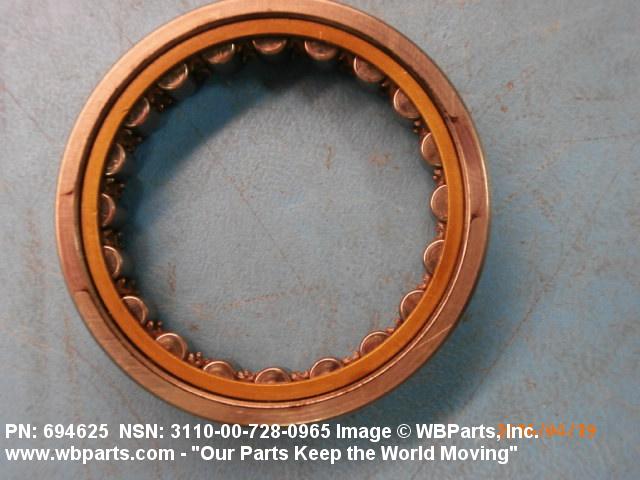 3110-00-728-0965 A nonadjustable roller bearing consisting of a single or multiple-row of hardened cylindrical rollers and a retainer used with or without inner or oute r rings. Excludes BEARING, ROLLER, AIRFRAME.