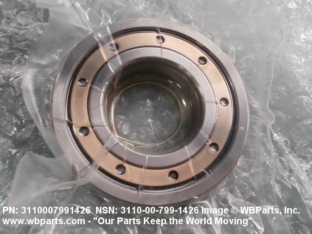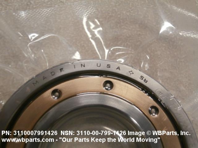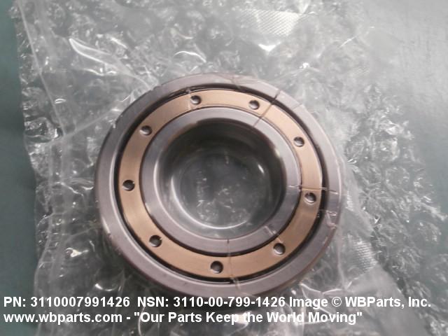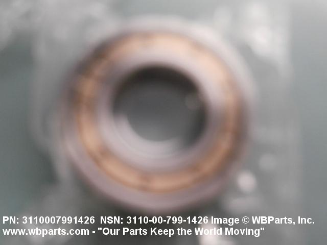 3110-00-799-1426 A cylindrical device in which the inner or outer ring turns upon a single or double row of hardened balls which roll easily between the two rings, thus minimizing friction. For items with faces specially ground for duplex mounting see BEARING, BALL, DUPLEX. Excludes BEARING, BALL, AIRFRAME.