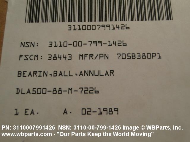 Part Alternates: 208S100, 705B380P1, 3110-00-799-1426, 00-799-1426, 3110007991426, 007991426