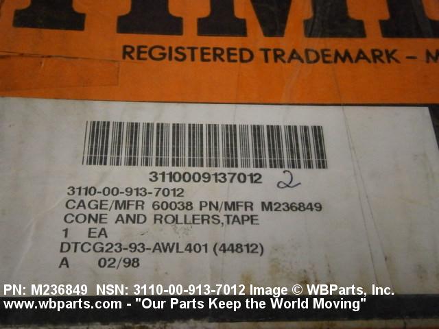Part Alternates: M236849, 2S6400, 3110-00-913-7012, 00-913-7012, 3110009137012, 009137012