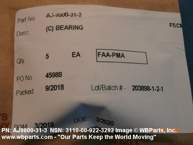 Part Alternates: AJ9800313, AJ9800-31-3, R3ZZ, 3110-00-922-3292, 00-922-3292, 3110009223292, 009223292