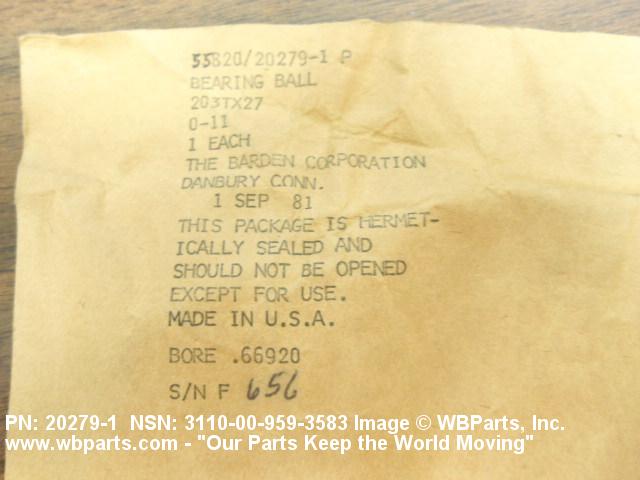 | 20279-1 | 70854 | BARDEN CORPORATION, THE DIV BARDEN PRECISION BEARINGS |