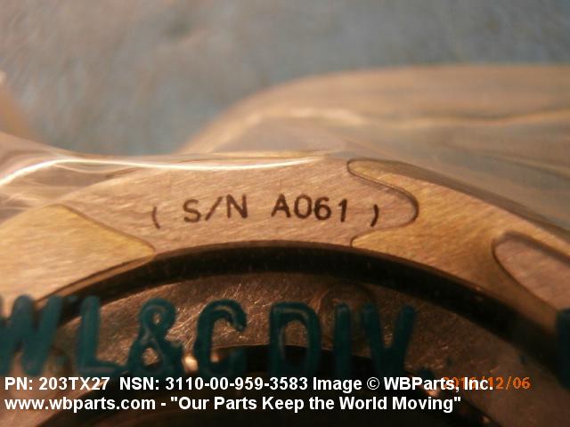 Part Alternates: SA2684, D202791, D20279-1, 202791, 20279-1, 203TX27, 203TX7K6, 3110-00-959-3583, 00-959-3583, 3110009593583, 009593583