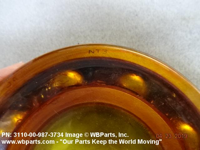 3110-00-987-3734 A cylindrical device in which the inner or outer ring turns upon a single or double row of hardened balls which roll easily between the two rings, thus minimizing friction. For items with faces specially ground for duplex mounting see BEARING, BALL, DUPLEX. Excludes BEARING, BALL, AIRFRAME.