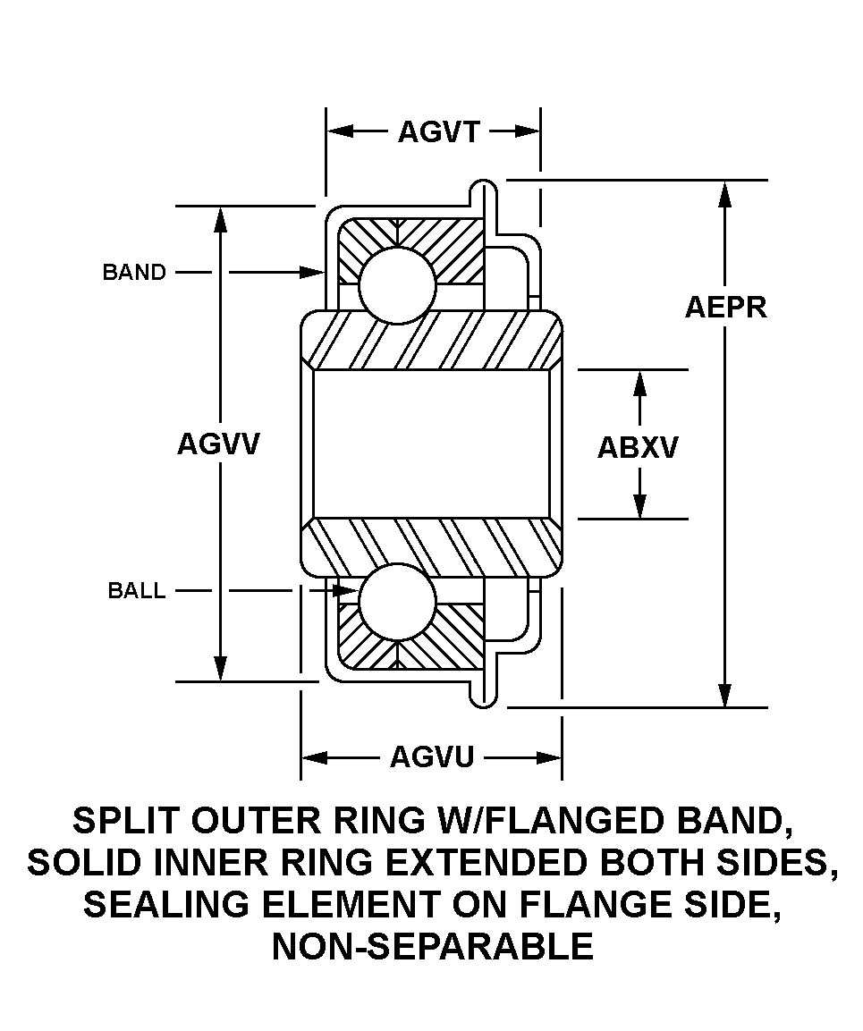 | STYLE DESIGNATOR | 60 SPLIT OUTER RING WITH FLANGED BAND, SOLID INNER RING EXTENDED BOTH SIDES, SEALING ELEMENT ON FLANGE SIDE, NON-SEPARABLE |