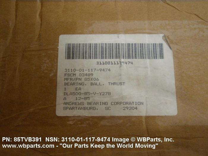 Part Alternates: 85TVB 391, 85TVB391, 3110-01-117-9474, 01-117-9474, 3110011179474, 011179474