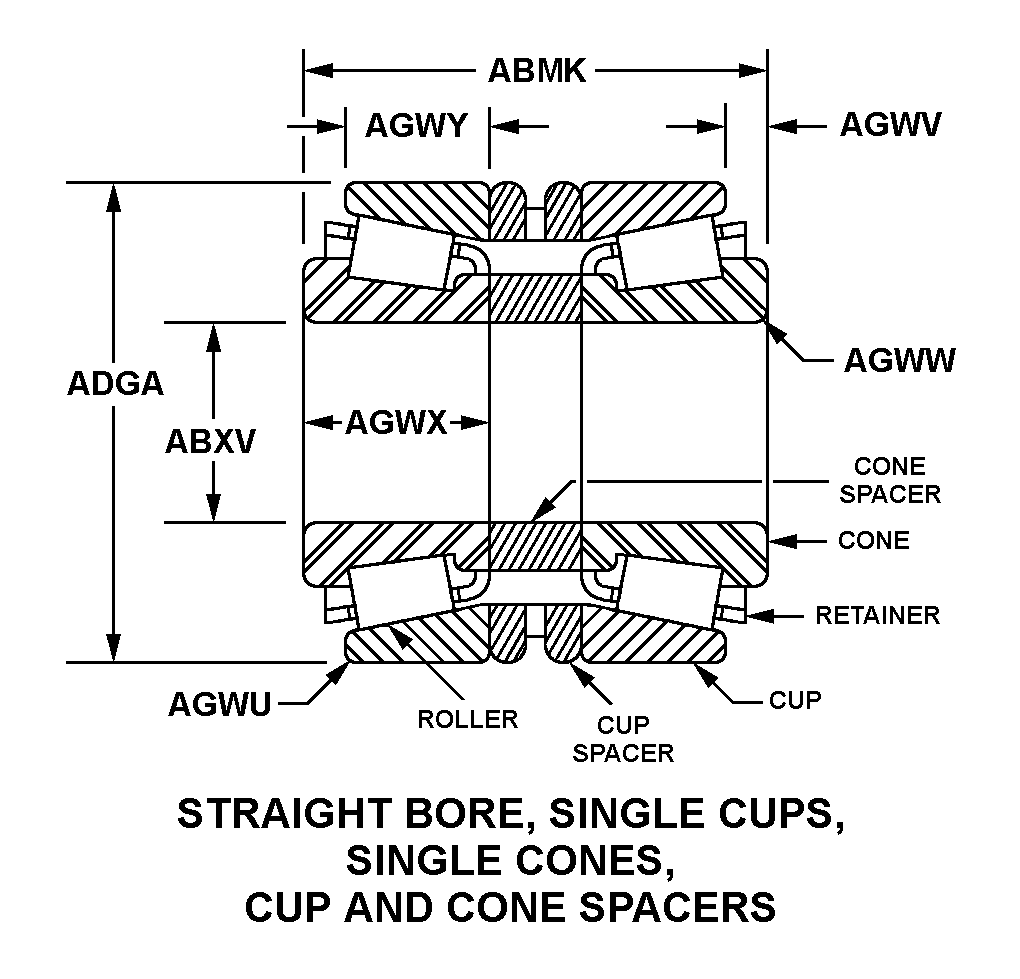 | STYLE DESIGNATOR | 388 STRAIGHT BORE, SINGLE CUPS, SINGLE CONES CUP AND CONE SPACERS |