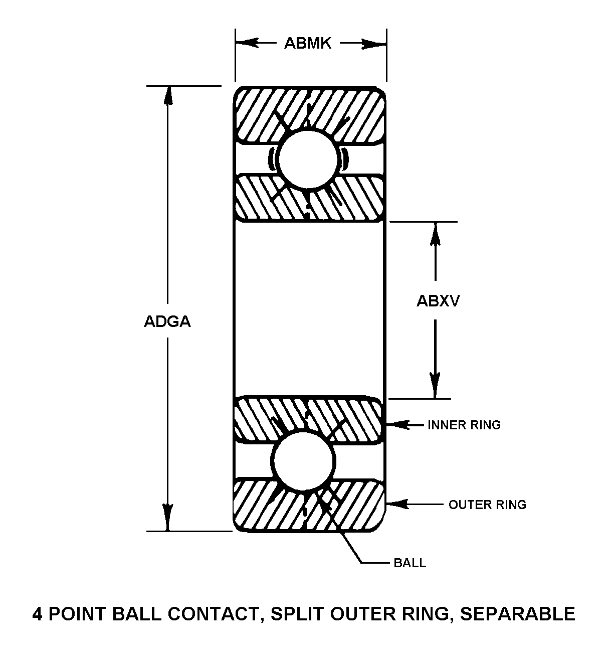 | STYLE DESIGNATOR | 40C 4 POINT BALL CONTACT, SPLIT OUTER RING, SEPARABLE |