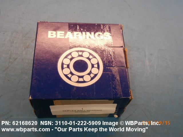 3110-01-222-5909 Two single row annular ball bearings selected dimensionally to be a matched pair or set. The ring faces have been specially ground to specified offsets that will produce predetermined preload when mounted. May include a single row angular contact bearing with faces specially ground for duplex mounting.
