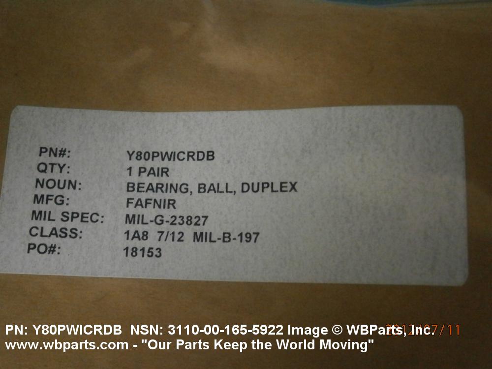 Part Alternates: Y80PWI-CR DB, Y80PWICRDB, 2843201101, 2843201-101, 3110-01-358-4758, 01-358-4758, 3110013584758, 013584758