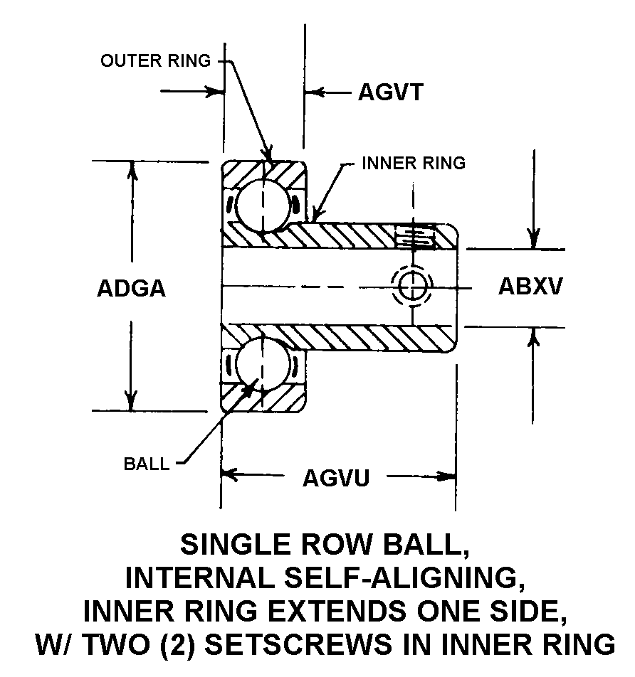 | STYLE DESIGNATOR | 110 SINGLE ROW BALL, INTERNAL SELF-ALIGNING, INNER RING EXTENDS ONE SIDE, WITH TWO SETSCREWS IN INNER RING |