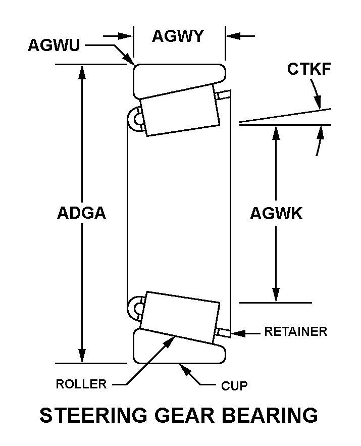 3110-01-547-9758 A cylindrical device in which the inner cone or outer cup turns upon a single or double row of tapered hardened rollers which roll easily in a race, thus minimizing friction and designed to carry a radial load and capable of sustaining axial thrust. Excludes BEARING, ROLLER, THRUST.