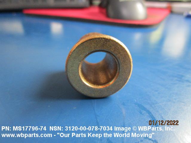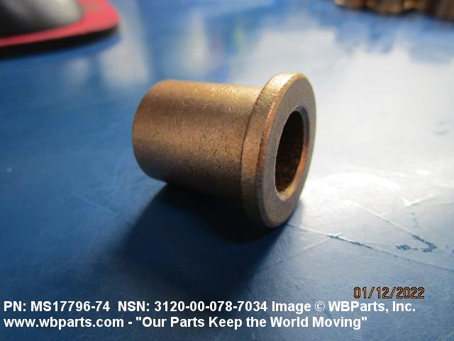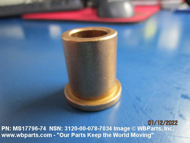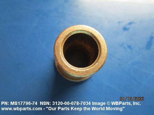 3120-00-078-7034 A tubular shaped item with or without flange(s) designed to reduce friction and carry a kinetic load on the surface(s) parallel to the axis of the bore. It must have a visible or detectable means of lubrication or be self-lubricated. The over all length must exceed 25 percent of the outside diameter or the shortest distance between peripheral flats of the body, except for straight tubular (without flange or shoulder) items having a bearing surface(s) parallel to the axis of the bore only. Includes items which are divided into two or more segments which include 180 degrees (3.141 radians) or less of the bearing periphery. See also BUSHING, SLEEVE; SPACER, SLEEVE; and WASHER (as modified). Excludes PIN, HOLLOW.