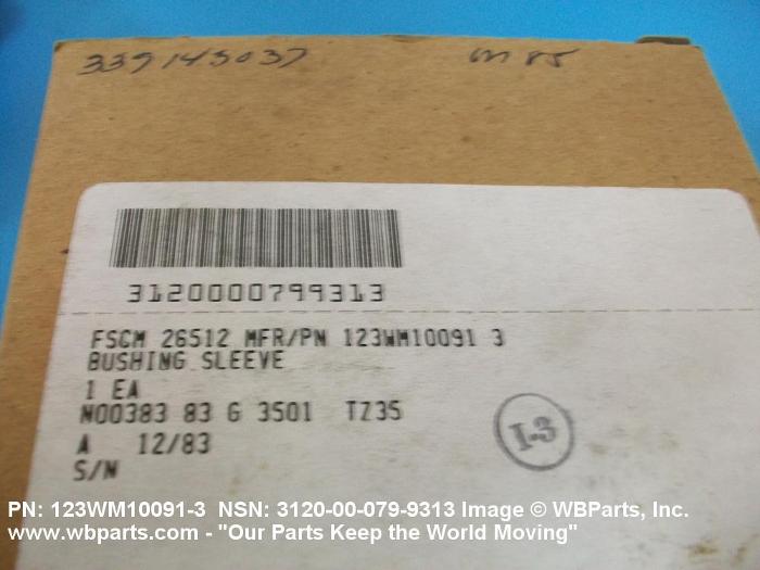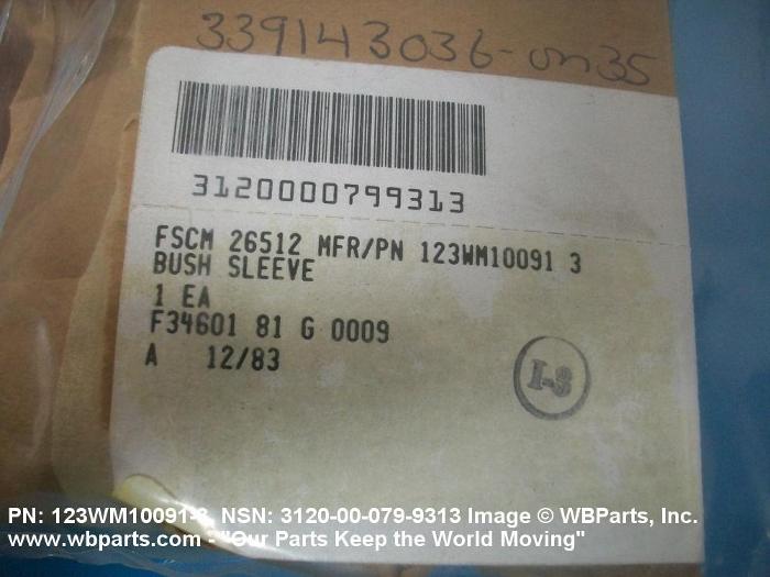 Part Alternates: 123WM100913, 123WM10091-3, 3120-00-079-9313, 00-079-9313, 3120000799313, 000799313