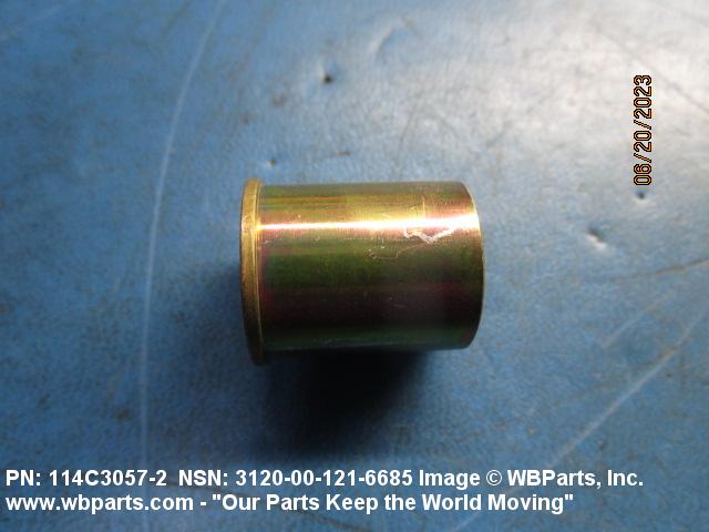 3120-00-121-6685 A tubular shaped unthreaded item with or without a flange at one end designed to be inserted into a hole to reduce the inside diameter of the hole and to protect the surrounding body structure from damage resulting from stress, strain, and/or vibration. The overall length must exceed 25 percent of the outside diameter or the shortest distance between peripheral flats of the body. Includes items which are divided into two or more segments which includes 180 degrees (3.141 radians) or less of the bearing periphery. For items made of rubber, see BUSHING, NONMETALLIC. See also BEARING, SLEEVE; BUSHING, TAPERED; SPACER, SLEEVE; INSULATOR, BUSHING; and BUSHING, ELECTRICAL CONDUCTOR. Excludes BUSHING, DRILL, JIG.20231200026Bearings, Plain, Unmounted53650035Bushings, Rings, Shims, and Spacers