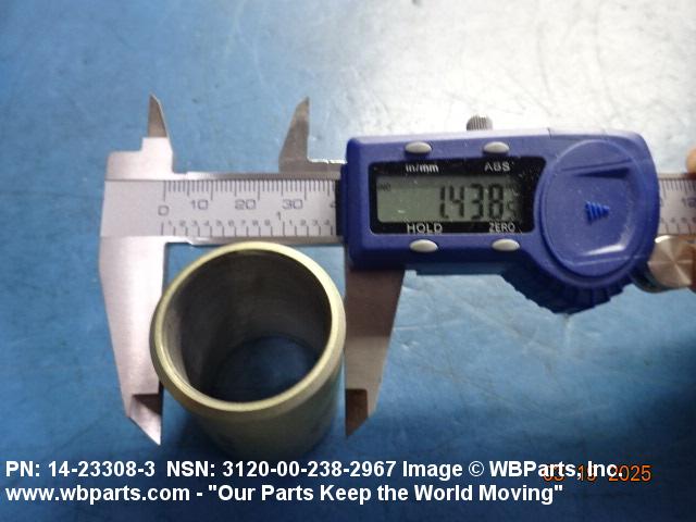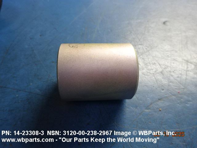 3120-00-238-2967 A tubular shaped unthreaded item with or without a flange at one end designed to be inserted into a hole to reduce the inside diameter of the hole and to protect the surrounding body structure from damage resulting from stress, strain, and/or vibration. The overall length must exceed 25 percent of the outside diameter or the shortest distance between peripheral flats of the body. Includes items which are divided into two or more segments which includes 180 degrees (3.141 radians) or less of the bearing periphery. For items made of rubber, see BUSHING, NONMETALLIC. See also BEARING, SLEEVE; BUSHING, TAPERED; SPACER, SLEEVE; INSULATOR, BUSHING; and BUSHING, ELECTRICAL CONDUCTOR. Excludes BUSHING, DRILL, JIG.20231200026Bearings, Plain, Unmounted53650035Bushings, Rings, Shims, and Spacers