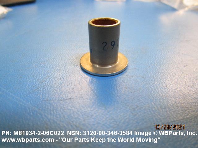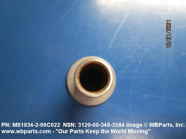 3120-00-346-3584 A tubular shaped item with or without flange(s) designed to reduce friction and carry a kinetic load on the surface(s) parallel to the axis of the bore. It must have a visible or detectable means of lubrication or be self-lubricated. The over all length must exceed 25 percent of the outside diameter or the shortest distance between peripheral flats of the body, except for straight tubular (without flange or shoulder) items having a bearing surface(s) parallel to the axis of the bore only. Includes items which are divided into two or more segments which include 180 degrees (3.141 radians) or less of the bearing periphery. See also BUSHING, SLEEVE; SPACER, SLEEVE; and WASHER (as modified). Excludes PIN, HOLLOW.