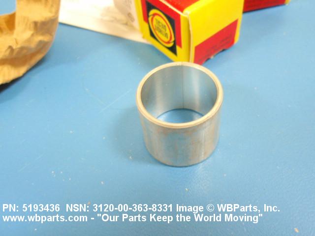 3120-00-363-8331 A tubular shaped item with or without flange(s) designed to reduce friction and carry a kinetic load on the surface(s) parallel to the axis of the bore. It must have a visible or detectable means of lubrication or be self-lubricated. The over all length must exceed 25 percent of the outside diameter or the shortest distance between peripheral flats of the body, except for straight tubular (without flange or shoulder) items having a bearing surface(s) parallel to the axis of the bore only. Includes items which are divided into two or more segments which include 180 degrees (3.141 radians) or less of the bearing periphery. See also BUSHING, SLEEVE; SPACER, SLEEVE; and WASHER (as modified). Excludes PIN, HOLLOW.