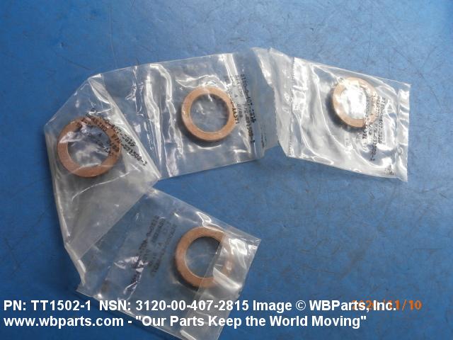 3120-00-407-2815 An item of any peripheral shape usually having one flat or spherical surface and a centrally located hole. It is designed for applications involving moving (kinetic) loads. Except for items fabricated from bearing quality synthetic (plastic) or composed of multilayer material, one bearing surface must either have a specific surface finish designation of 32 microinch (0.8 micrometre) or less, arithmetical average (aa) (arithmetic mean deviation) or one of the following conditions: be lapped or ground; have visible or detectable means of lubrication; grooves, indentations; or self-lubrication. The thickness must not exceed 25 percent of the outside diameter of the shortest distance between peripheral flats (when thickness and/or outside diameter is designated as a tolerance dimension, the maximum dimension will be used to determine compliance). Excludes straight, tubular (without flange) items having a bearing surface(s) parallel to the axis of the bore only. See also WASHER, FLAT and SPACER, SLEEVE.