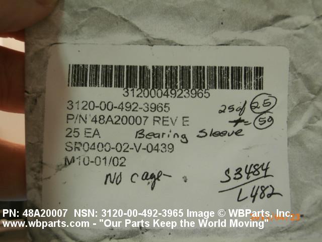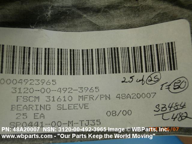 Part Alternates: 48A20007, 48A2007, 3120-00-492-3965, 00-492-3965, 3120004923965, 004923965
