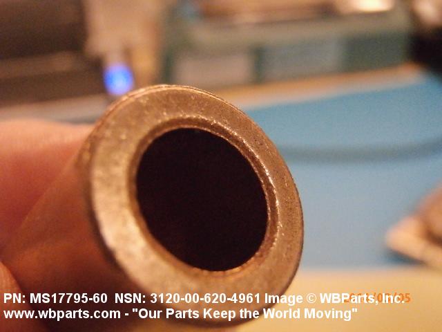 3120-00-620-4961 A tubular shaped item with or without flange(s) designed to reduce friction and carry a kinetic load on the surface(s) parallel to the axis of the bore. It must have a visible or detectable means of lubrication or be self-lubricated. The over all length must exceed 25 percent of the outside diameter or the shortest distance between peripheral flats of the body, except for straight tubular (without flange or shoulder) items having a bearing surface(s) parallel to the axis of the bore only. Includes items which are divided into two or more segments which include 180 degrees (3.141 radians) or less of the bearing periphery. See also BUSHING, SLEEVE; SPACER, SLEEVE; and WASHER (as modified). Excludes PIN, HOLLOW.