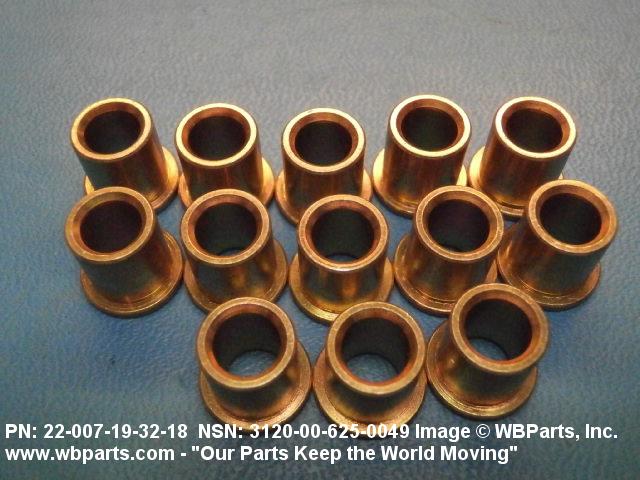 3120-00-625-0049 A tubular shaped unthreaded item with or without a flange at one end designed to be inserted into a hole to reduce the inside diameter of the hole and to protect the surrounding body structure from damage resulting from stress, strain, and/or vibration. The overall length must exceed 25 percent of the outside diameter or the shortest distance between peripheral flats of the body. Includes items which are divided into two or more segments which includes 180 degrees (3.141 radians) or less of the bearing periphery. For items made of rubber, see BUSHING, NONMETALLIC. See also BEARING, SLEEVE; BUSHING, TAPERED; SPACER, SLEEVE; INSULATOR, BUSHING; and BUSHING, ELECTRICAL CONDUCTOR. Excludes BUSHING, DRILL, JIG.20231200026Bearings, Plain, Unmounted53650035Bushings, Rings, Shims, and Spacers