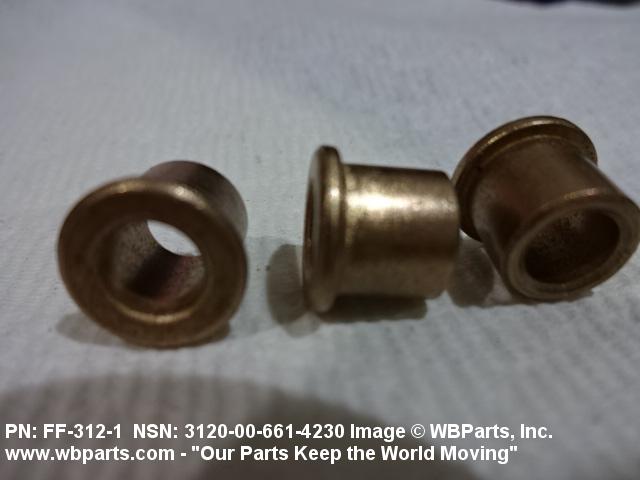 3120-00-661-4230 A tubular shaped item with or without flange(s) designed to reduce friction and carry a kinetic load on the surface(s) parallel to the axis of the bore. It must have a visible or detectable means of lubrication or be self-lubricated. The over all length must exceed 25 percent of the outside diameter or the shortest distance between peripheral flats of the body, except for straight tubular (without flange or shoulder) items having a bearing surface(s) parallel to the axis of the bore only. Includes items which are divided into two or more segments which include 180 degrees (3.141 radians) or less of the bearing periphery. See also BUSHING, SLEEVE; SPACER, SLEEVE; and WASHER (as modified). Excludes PIN, HOLLOW.