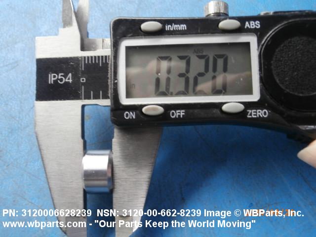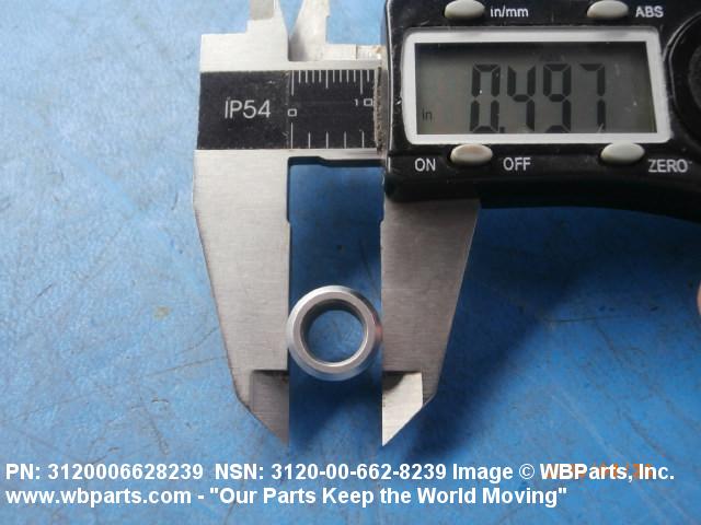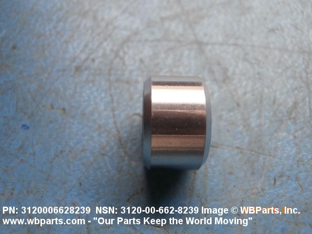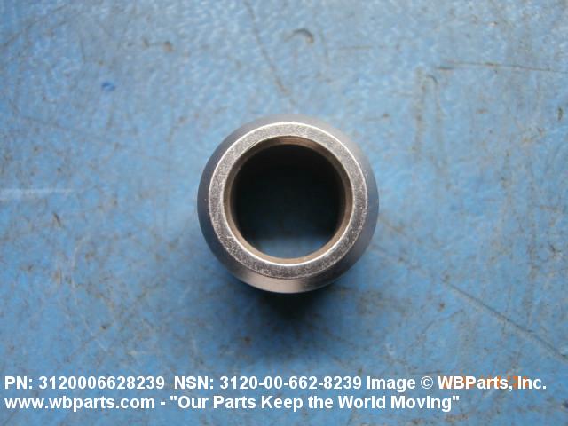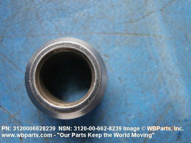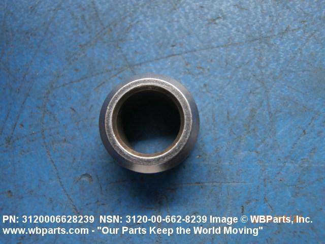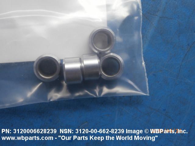 3120-00-662-8239 A tubular shaped unthreaded item with or without a flange at one end designed to be inserted into a hole to reduce the inside diameter of the hole and to protect the surrounding body structure from damage resulting from stress, strain, and/or vibration. The overall length must exceed 25 percent of the outside diameter or the shortest distance between peripheral flats of the body. Includes items which are divided into two or more segments which includes 180 degrees (3.141 radians) or less of the bearing periphery. For items made of rubber, see BUSHING, NONMETALLIC. See also BEARING, SLEEVE; BUSHING, TAPERED; SPACER, SLEEVE; INSULATOR, BUSHING; and BUSHING, ELECTRICAL CONDUCTOR. Excludes BUSHING, DRILL, JIG.20231200026Bearings, Plain, Unmounted53650035Bushings, Rings, Shims, and Spacers