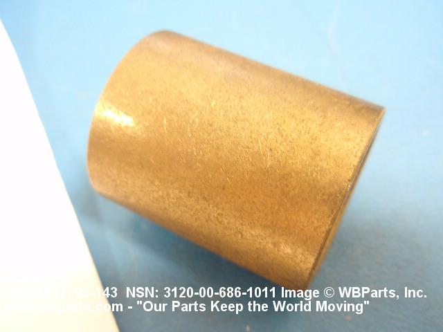 3120-00-686-1011 A tubular shaped item with or without flange(s) designed to reduce friction and carry a kinetic load on the surface(s) parallel to the axis of the bore. It must have a visible or detectable means of lubrication or be self-lubricated. The over all length must exceed 25 percent of the outside diameter or the shortest distance between peripheral flats of the body, except for straight tubular (without flange or shoulder) items having a bearing surface(s) parallel to the axis of the bore only. Includes items which are divided into two or more segments which include 180 degrees (3.141 radians) or less of the bearing periphery. See also BUSHING, SLEEVE; SPACER, SLEEVE; and WASHER (as modified). Excludes PIN, HOLLOW.