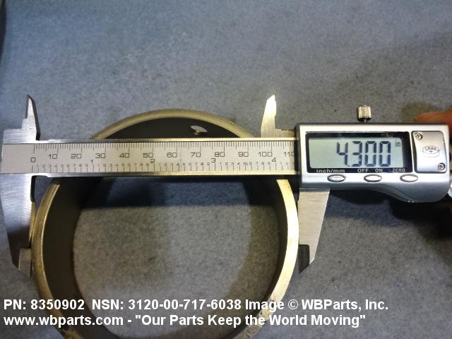 3120-00-717-6038 A tubular shaped item with or without flange(s) designed to reduce friction and carry a kinetic load on the surface(s) parallel to the axis of the bore. It must have a visible or detectable means of lubrication or be self-lubricated. The over all length must exceed 25 percent of the outside diameter or the shortest distance between peripheral flats of the body, except for straight tubular (without flange or shoulder) items having a bearing surface(s) parallel to the axis of the bore only. Includes items which are divided into two or more segments which include 180 degrees (3.141 radians) or less of the bearing periphery. See also BUSHING, SLEEVE; SPACER, SLEEVE; and WASHER (as modified). Excludes PIN, HOLLOW.