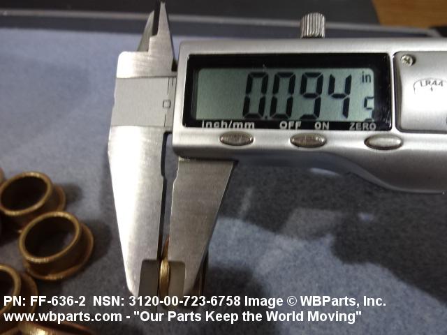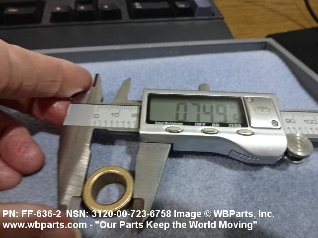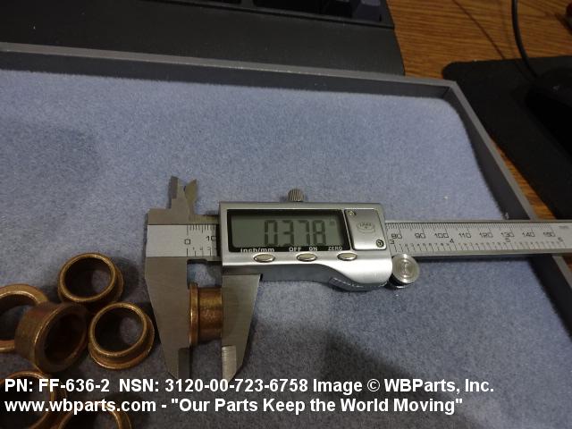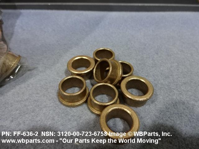 3120-00-723-6758 A tubular shaped item with or without flange(s) designed to reduce friction and carry a kinetic load on the surface(s) parallel to the axis of the bore. It must have a visible or detectable means of lubrication or be self-lubricated. The over all length must exceed 25 percent of the outside diameter or the shortest distance between peripheral flats of the body, except for straight tubular (without flange or shoulder) items having a bearing surface(s) parallel to the axis of the bore only. Includes items which are divided into two or more segments which include 180 degrees (3.141 radians) or less of the bearing periphery. See also BUSHING, SLEEVE; SPACER, SLEEVE; and WASHER (as modified). Excludes PIN, HOLLOW.