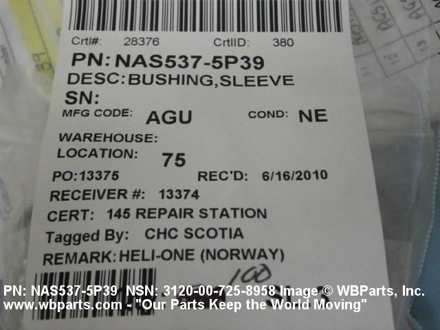 | NAS537-5P39 | 80205 | NATIONAL AEROSPACE STANDARDS COMMITTEE AEROSPACE INDUSTRIES |