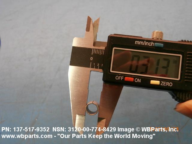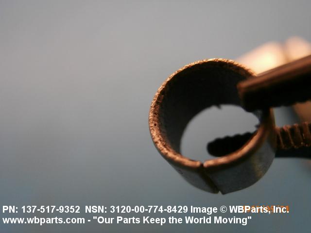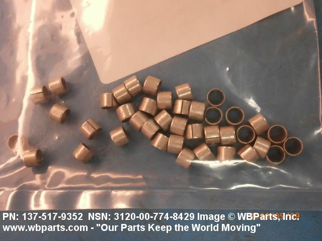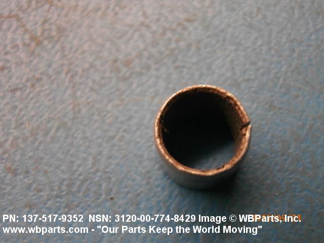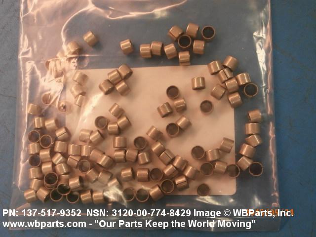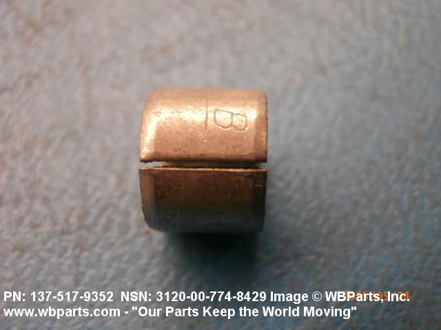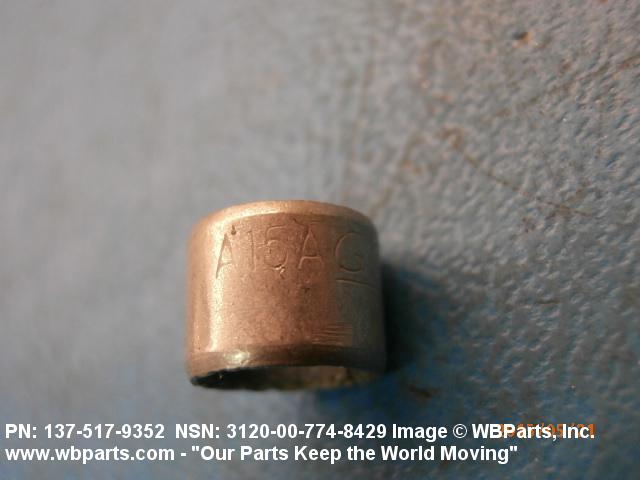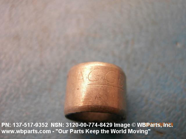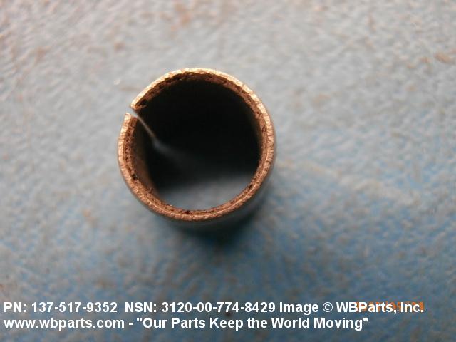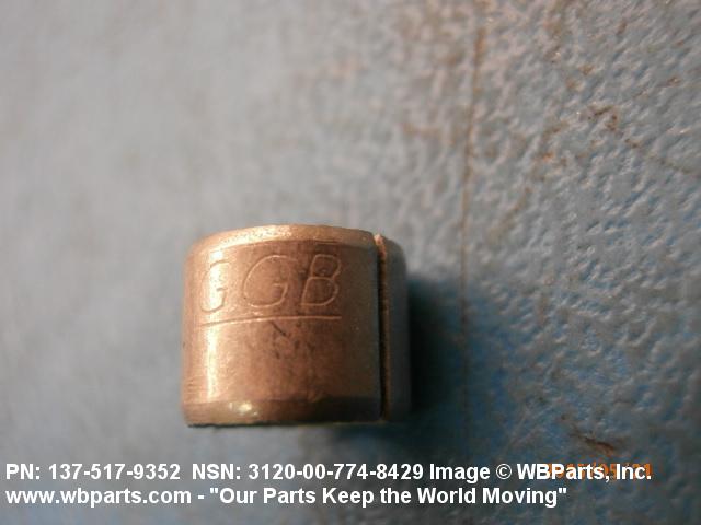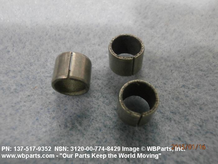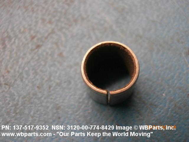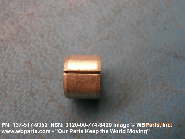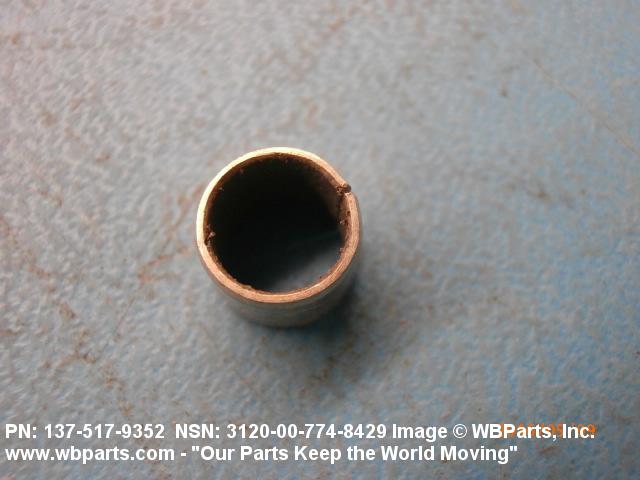 3120-00-774-8429 A tubular shaped item with or without flange(s) designed to reduce friction and carry a kinetic load on the surface(s) parallel to the axis of the bore. It must have a visible or detectable means of lubrication or be self-lubricated. The over all length must exceed 25 percent of the outside diameter or the shortest distance between peripheral flats of the body, except for straight tubular (without flange or shoulder) items having a bearing surface(s) parallel to the axis of the bore only. Includes items which are divided into two or more segments which include 180 degrees (3.141 radians) or less of the bearing periphery. See also BUSHING, SLEEVE; SPACER, SLEEVE; and WASHER (as modified). Excludes PIN, HOLLOW.