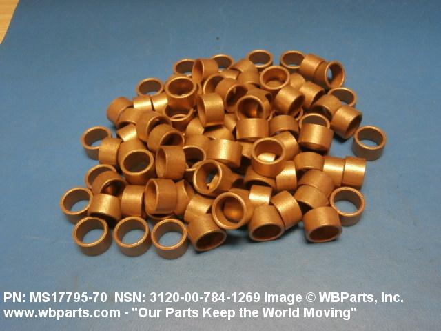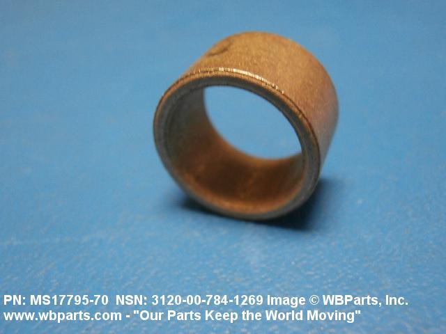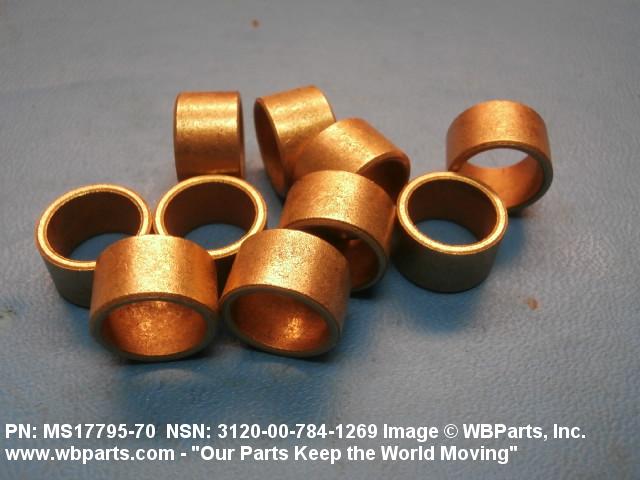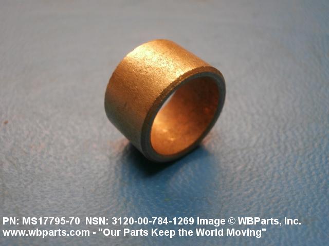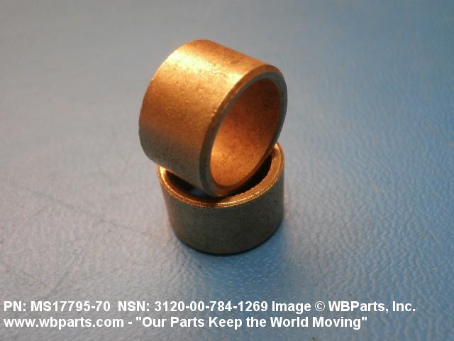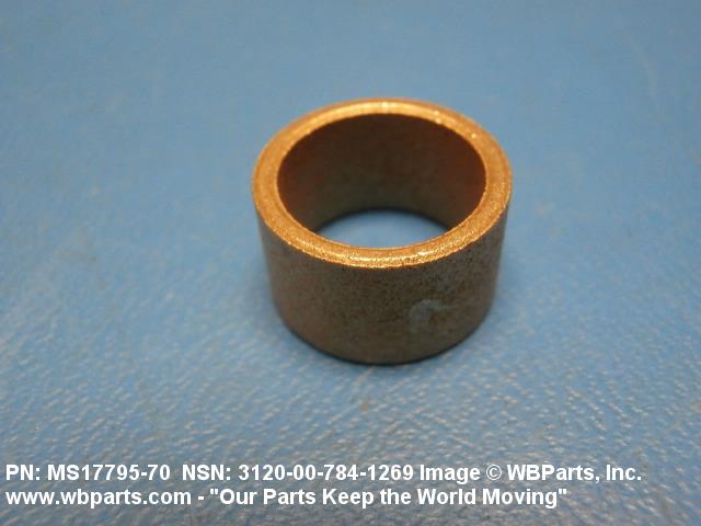 3120-00-784-1269 A tubular shaped item with or without flange(s) designed to reduce friction and carry a kinetic load on the surface(s) parallel to the axis of the bore. It must have a visible or detectable means of lubrication or be self-lubricated. The over all length must exceed 25 percent of the outside diameter or the shortest distance between peripheral flats of the body, except for straight tubular (without flange or shoulder) items having a bearing surface(s) parallel to the axis of the bore only. Includes items which are divided into two or more segments which include 180 degrees (3.141 radians) or less of the bearing periphery. See also BUSHING, SLEEVE; SPACER, SLEEVE; and WASHER (as modified). Excludes PIN, HOLLOW.
