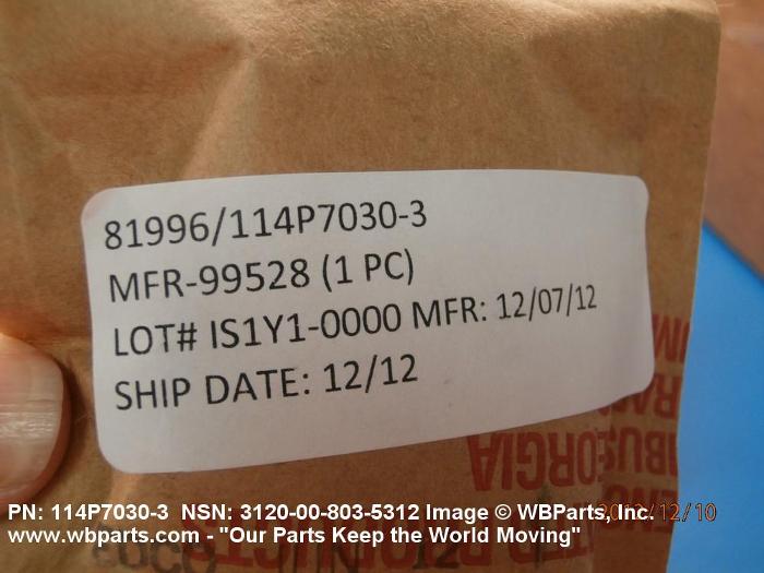 NSN 3120-00-803-5312 114P70303, 114P7030-3, 00-803-5312