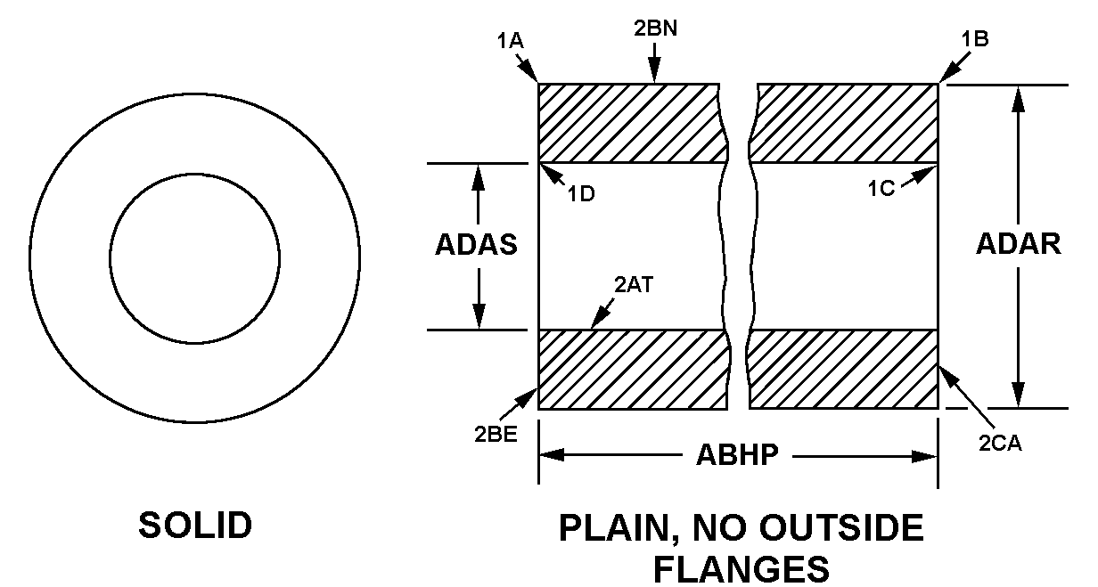 3120-00-887-3385 A tubular shaped unthreaded item with or without a flange at one end designed to be inserted into a hole to reduce the inside diameter of the hole and to protect the surrounding body structure from damage resulting from stress, strain, and/or vibration. The overall length must exceed 25 percent of the outside diameter or the shortest distance between peripheral flats of the body. Includes items which are divided into two or more segments which includes 180 degrees (3.141 radians) or less of the bearing periphery. For items made of rubber, see BUSHING, NONMETALLIC. See also BEARING, SLEEVE; BUSHING, TAPERED; SPACER, SLEEVE; INSULATOR, BUSHING; and BUSHING, ELECTRICAL CONDUCTOR. Excludes BUSHING, DRILL, JIG.20231200026Bearings, Plain, Unmounted53650035Bushings, Rings, Shims, and Spacers