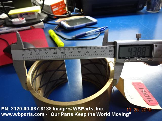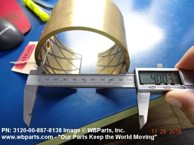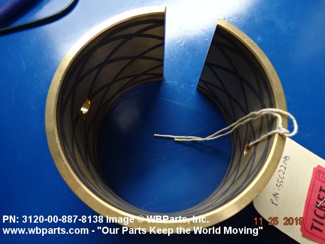 3120-00-887-8138 A tubular shaped unthreaded item with or without a flange at one end designed to be inserted into a hole to reduce the inside diameter of the hole and to protect the surrounding body structure from damage resulting from stress, strain, and/or vibration. The overall length must exceed 25 percent of the outside diameter or the shortest distance between peripheral flats of the body. Includes items which are divided into two or more segments which includes 180 degrees (3.141 radians) or less of the bearing periphery. For items made of rubber, see BUSHING, NONMETALLIC. See also BEARING, SLEEVE; BUSHING, TAPERED; SPACER, SLEEVE; INSULATOR, BUSHING; and BUSHING, ELECTRICAL CONDUCTOR. Excludes BUSHING, DRILL, JIG.20231200026Bearings, Plain, Unmounted53650035Bushings, Rings, Shims, and Spacers