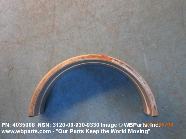 3120-00-930-9330 A half of a two-piece split type BEARING, SLEEVE.