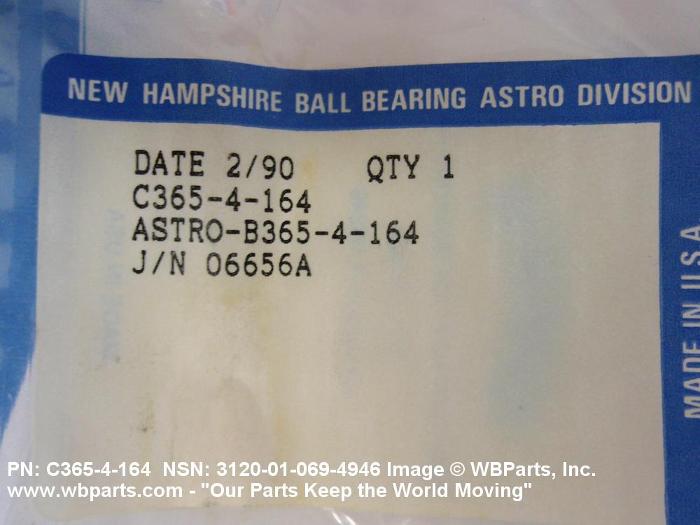 | B365-4-164 | 15860 | NEW HAMPSHIRE BALL BEARINGS, INC. DBA ASTRO DIVISION |