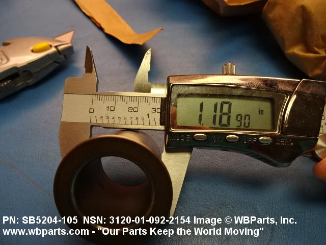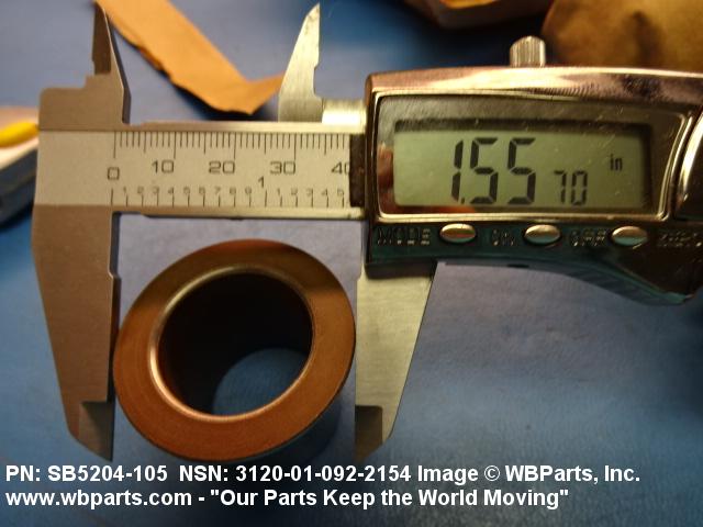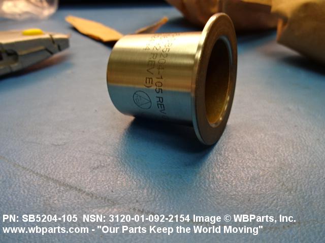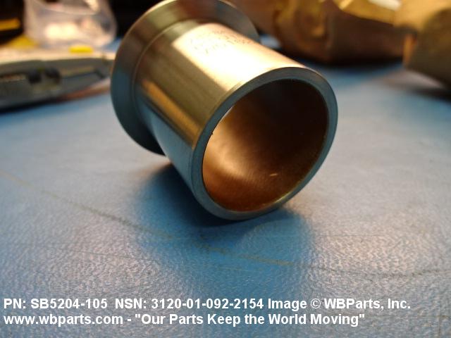 3120-01-092-2154 A tubular shaped item with or without flange(s) designed to reduce friction and carry a kinetic load on the surface(s) parallel to the axis of the bore. It must have a visible or detectable means of lubrication or be self-lubricated. The over all length must exceed 25 percent of the outside diameter or the shortest distance between peripheral flats of the body, except for straight tubular (without flange or shoulder) items having a bearing surface(s) parallel to the axis of the bore only. Includes items which are divided into two or more segments which include 180 degrees (3.141 radians) or less of the bearing periphery. See also BUSHING, SLEEVE; SPACER, SLEEVE; and WASHER (as modified). Excludes PIN, HOLLOW.