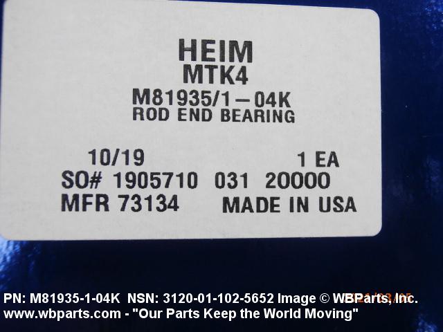 NSN 3120-01-102-5652 MS2124S04K, M81935/1-04K, M81935104K