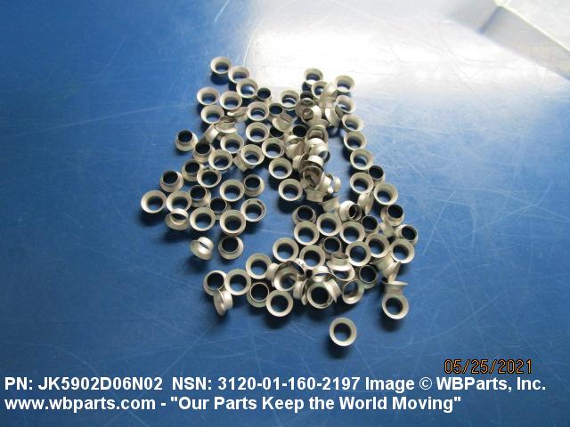 3120-01-160-2197 A tubular shaped unthreaded item with or without a flange at one end designed to be inserted into a hole to reduce the inside diameter of the hole and to protect the surrounding body structure from damage resulting from stress, strain, and/or vibration. The overall length must exceed 25 percent of the outside diameter or the shortest distance between peripheral flats of the body. Includes items which are divided into two or more segments which includes 180 degrees (3.141 radians) or less of the bearing periphery. For items made of rubber, see BUSHING, NONMETALLIC. See also BEARING, SLEEVE; BUSHING, TAPERED; SPACER, SLEEVE; INSULATOR, BUSHING; and BUSHING, ELECTRICAL CONDUCTOR. Excludes BUSHING, DRILL, JIG.20231200026Bearings, Plain, Unmounted53650035Bushings, Rings, Shims, and Spacers