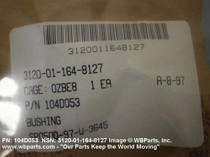 Part Alternates: 104D053, 3120-01-164-8127, 01-164-8127, 3120011648127, 011648127