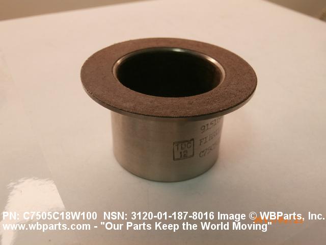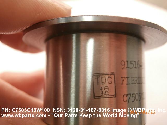 3120-01-187-8016 A tubular shaped item with or without flange(s) designed to reduce friction and carry a kinetic load on the surface(s) parallel to the axis of the bore. It must have a visible or detectable means of lubrication or be self-lubricated. The over all length must exceed 25 percent of the outside diameter or the shortest distance between peripheral flats of the body, except for straight tubular (without flange or shoulder) items having a bearing surface(s) parallel to the axis of the bore only. Includes items which are divided into two or more segments which include 180 degrees (3.141 radians) or less of the bearing periphery. See also BUSHING, SLEEVE; SPACER, SLEEVE; and WASHER (as modified). Excludes PIN, HOLLOW.
