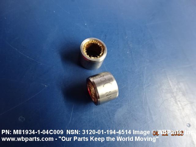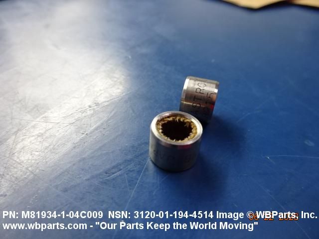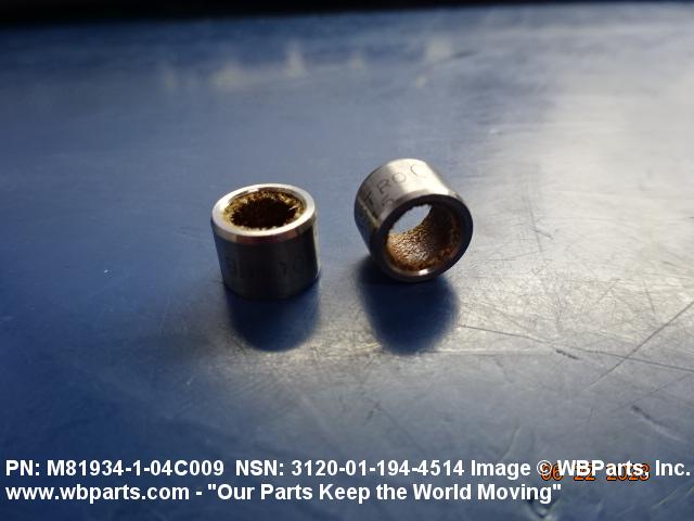 3120-01-194-4514 A tubular shaped item with or without flange(s) designed to reduce friction and carry a kinetic load on the surface(s) parallel to the axis of the bore. It must have a visible or detectable means of lubrication or be self-lubricated. The over all length must exceed 25 percent of the outside diameter or the shortest distance between peripheral flats of the body, except for straight tubular (without flange or shoulder) items having a bearing surface(s) parallel to the axis of the bore only. Includes items which are divided into two or more segments which include 180 degrees (3.141 radians) or less of the bearing periphery. See also BUSHING, SLEEVE; SPACER, SLEEVE; and WASHER (as modified). Excludes PIN, HOLLOW.