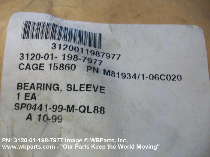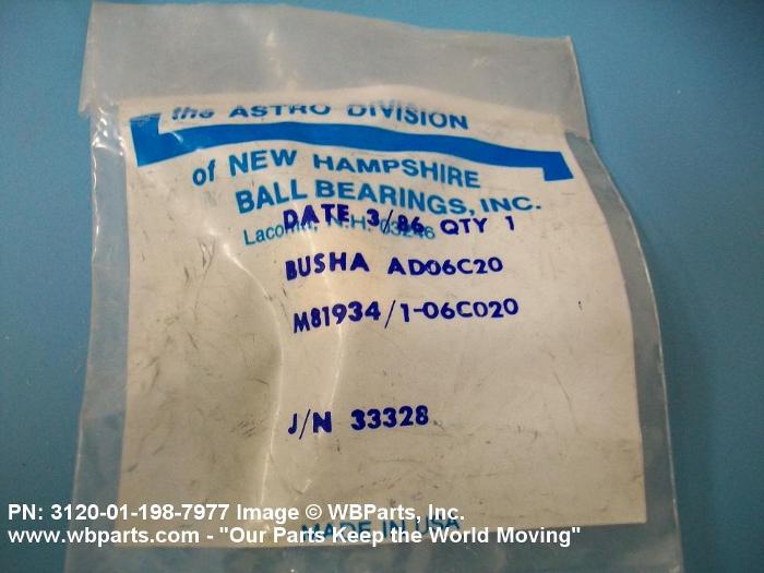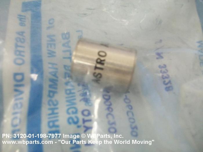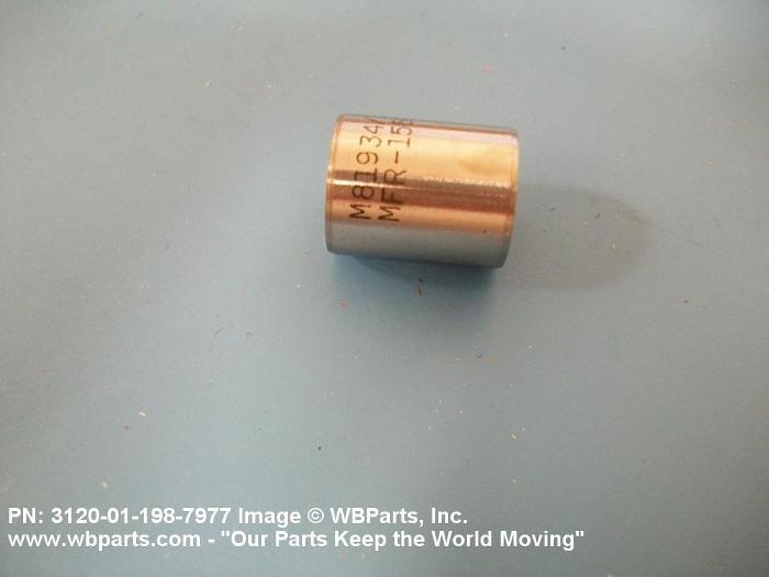 3120-01-198-7977 A tubular shaped item with or without flange(s) designed to reduce friction and carry a kinetic load on the surface(s) parallel to the axis of the bore. It must have a visible or detectable means of lubrication or be self-lubricated. The over all length must exceed 25 percent of the outside diameter or the shortest distance between peripheral flats of the body, except for straight tubular (without flange or shoulder) items having a bearing surface(s) parallel to the axis of the bore only. Includes items which are divided into two or more segments which include 180 degrees (3.141 radians) or less of the bearing periphery. See also BUSHING, SLEEVE; SPACER, SLEEVE; and WASHER (as modified). Excludes PIN, HOLLOW.