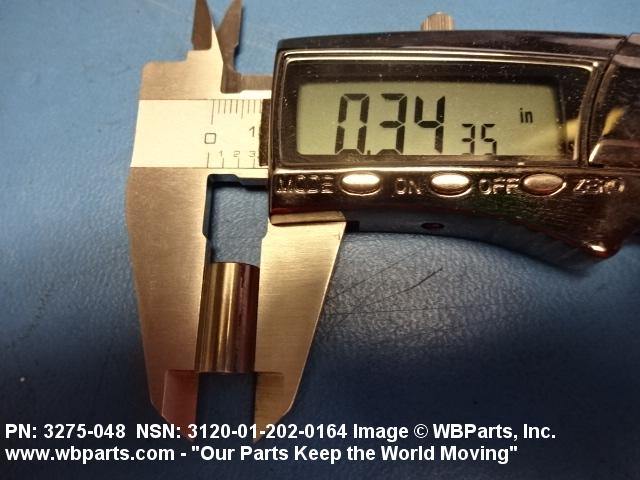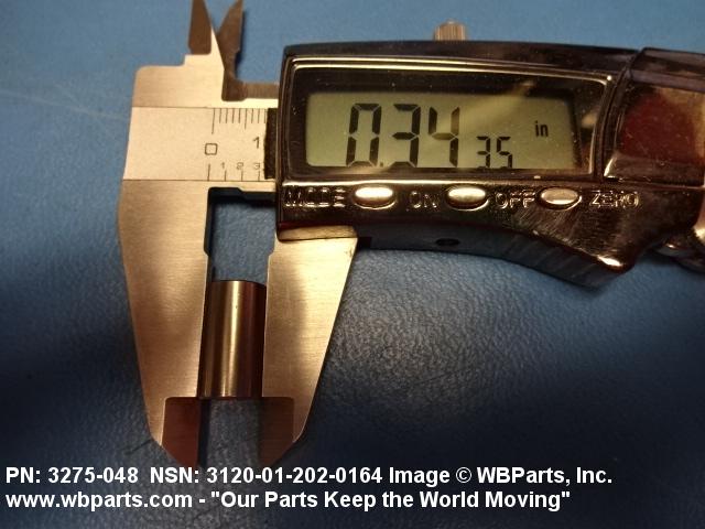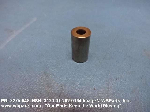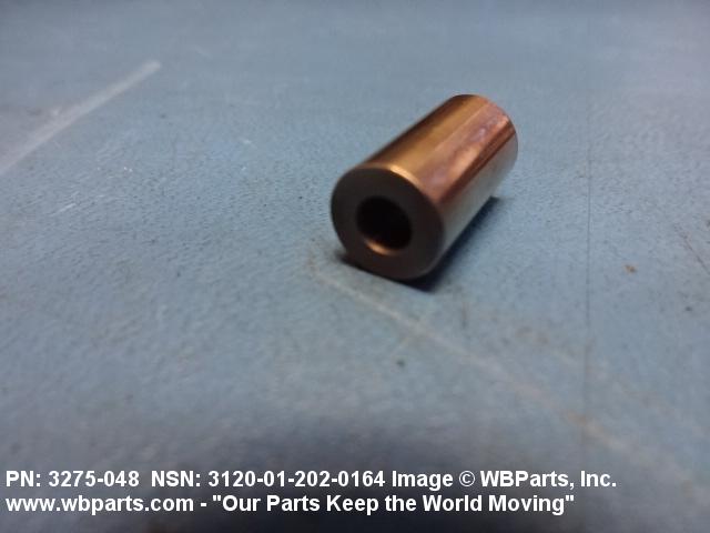 3120-01-202-0164 A tubular shaped unthreaded item with or without a flange at one end designed to be inserted into a hole to reduce the inside diameter of the hole and to protect the surrounding body structure from damage resulting from stress, strain, and/or vibration. The overall length must exceed 25 percent of the outside diameter or the shortest distance between peripheral flats of the body. Includes items which are divided into two or more segments which includes 180 degrees (3.141 radians) or less of the bearing periphery. For items made of rubber, see BUSHING, NONMETALLIC. See also BEARING, SLEEVE; BUSHING, TAPERED; SPACER, SLEEVE; INSULATOR, BUSHING; and BUSHING, ELECTRICAL CONDUCTOR. Excludes BUSHING, DRILL, JIG.20231200026Bearings, Plain, Unmounted53650035Bushings, Rings, Shims, and Spacers