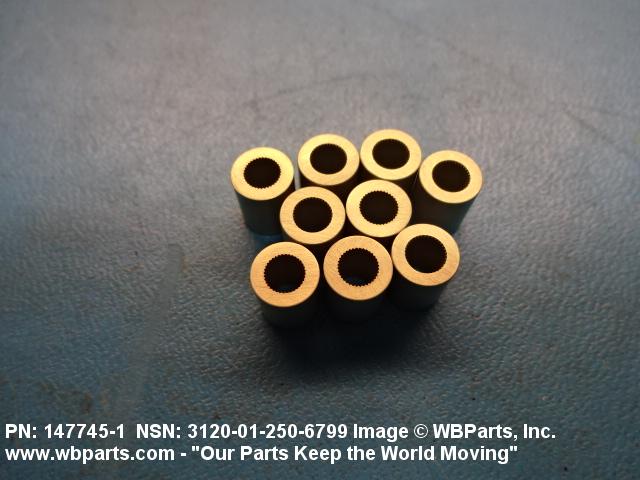 3120-01-250-6799 A tubular shaped unthreaded item with or without a flange at one end designed to be inserted into a hole to reduce the inside diameter of the hole and to protect the surrounding body structure from damage resulting from stress, strain, and/or vibration. The overall length must exceed 25 percent of the outside diameter or the shortest distance between peripheral flats of the body. Includes items which are divided into two or more segments which includes 180 degrees (3.141 radians) or less of the bearing periphery. For items made of rubber, see BUSHING, NONMETALLIC. See also BEARING, SLEEVE; BUSHING, TAPERED; SPACER, SLEEVE; INSULATOR, BUSHING; and BUSHING, ELECTRICAL CONDUCTOR. Excludes BUSHING, DRILL, JIG.20231200026Bearings, Plain, Unmounted53650035Bushings, Rings, Shims, and Spacers