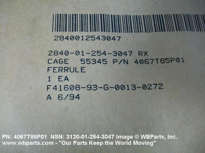 Part Alternates: 4067T85P01, 3120-01-254-3047, 01-254-3047, 3120012543047, 012543047