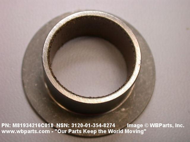 3120-01-354-8274 A tubular shaped item with or without flange(s) designed to reduce friction and carry a kinetic load on the surface(s) parallel to the axis of the bore. It must have a visible or detectable means of lubrication or be self-lubricated. The over all length must exceed 25 percent of the outside diameter or the shortest distance between peripheral flats of the body, except for straight tubular (without flange or shoulder) items having a bearing surface(s) parallel to the axis of the bore only. Includes items which are divided into two or more segments which include 180 degrees (3.141 radians) or less of the bearing periphery. See also BUSHING, SLEEVE; SPACER, SLEEVE; and WASHER (as modified). Excludes PIN, HOLLOW.